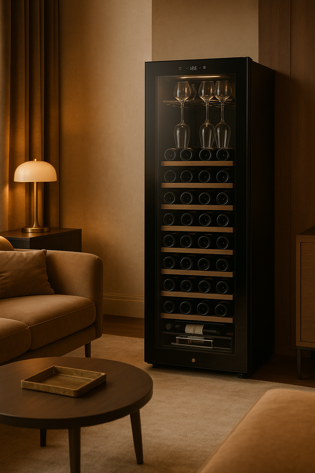 Nos caves à vin sont conçues pour s’intégrer dans un salon, une cuisine ou un espace professionnel avec un look épuré, silencieux et premium.